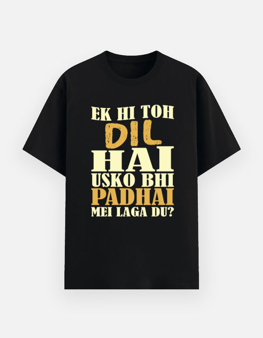 Ek Hi Toh Dil Hai Usko Bhi Padhai Mei Laga Du T-Shirt – Desi Student Meme Tee | Gadbadi