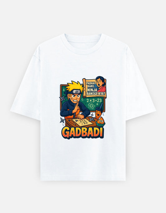 Gadbadi Unisex Oversized T-Shirt – “Ninja Banoge Kya?” Naruto School Fail Tee
