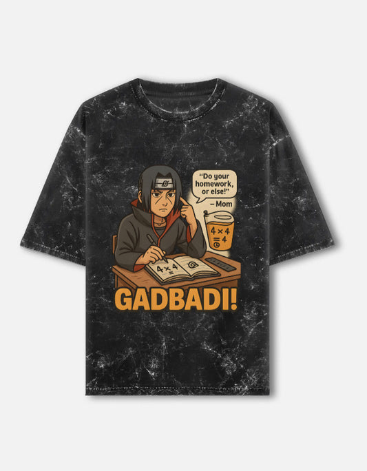 Gadbadi Itachi Parody Oversized Tee – Unisex Acid Wash (240 GSM)